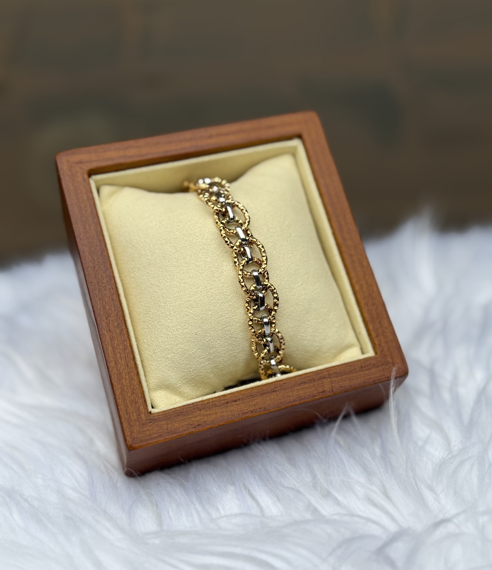 Home Pulseiras Pulseira 2 Tons Pulseira 2 Tons 16,00 € Desconto de %. Comprar Contactar Adicionar à wishlist Pulseira dourada e prateada em aço inoxidável. Extensão incluída. Partilhar